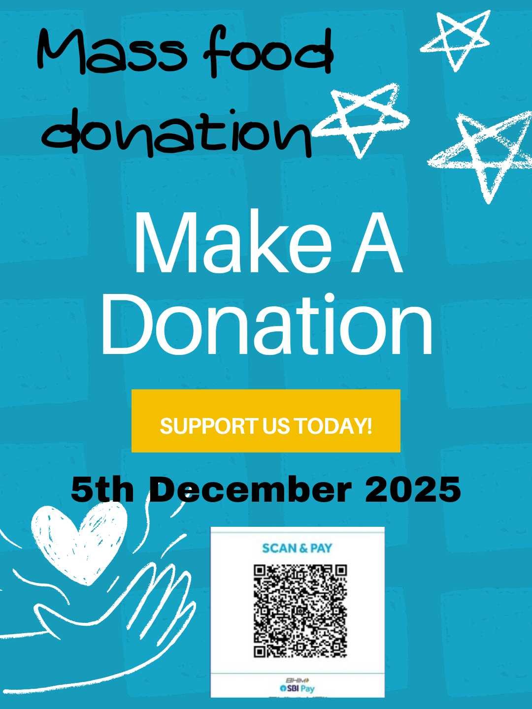 On 5th December 2025 our organisation is conducting a mass food donation event in a community based School, in Bhopal approximately more than 300 people will be given food packets at the lunch time. Our expected expenditure is around 30000, we appeal to you to kindly generously donate for this noble cause.
